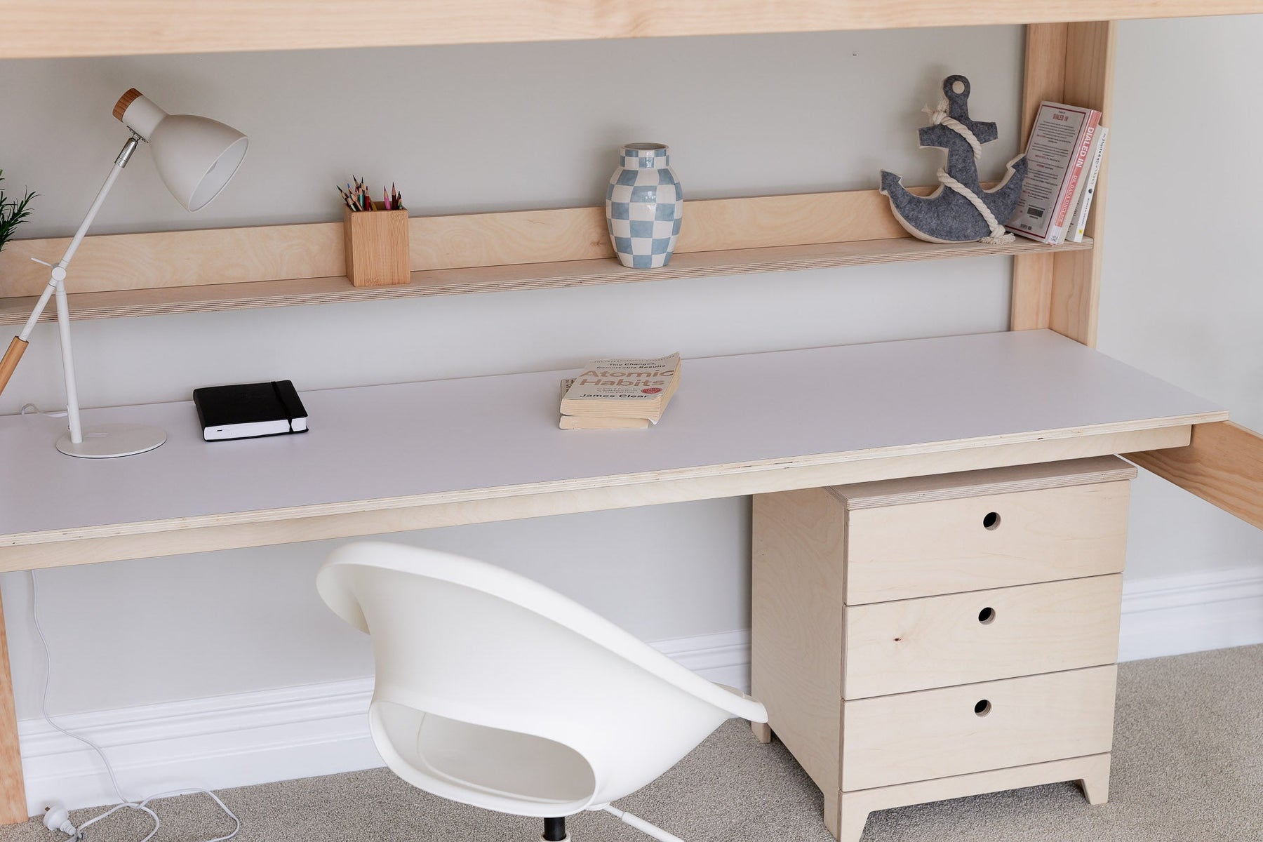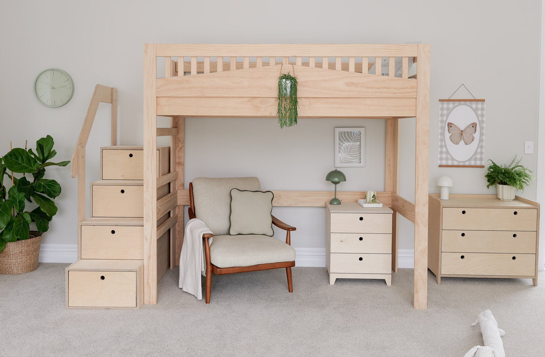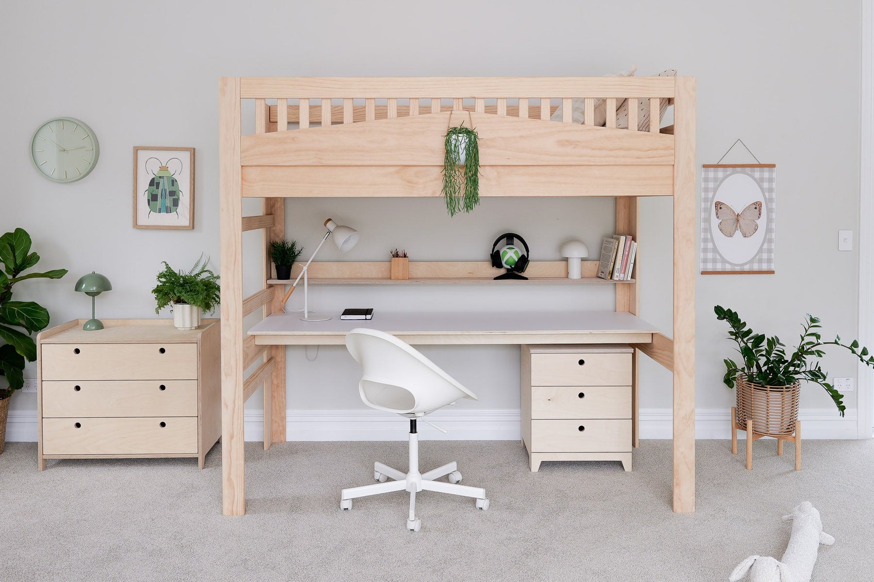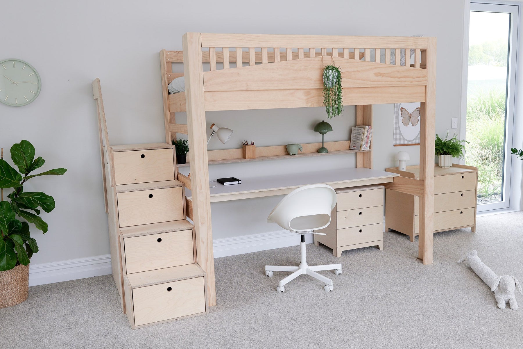 Create a warm and functional space with our Cozy loft bed with desk in NZ pine. Designed for comfort and focus, it offers a raised sleeping area with a study zone below — ideal for teens, tweens, and beyond. A beautiful and practical loft bed with a desk for kids' bedrooms in NZ and Australia.